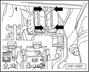 - Disengage catches in - direction of arrow - and pull thermo-fuses - 1 - out of mounts.