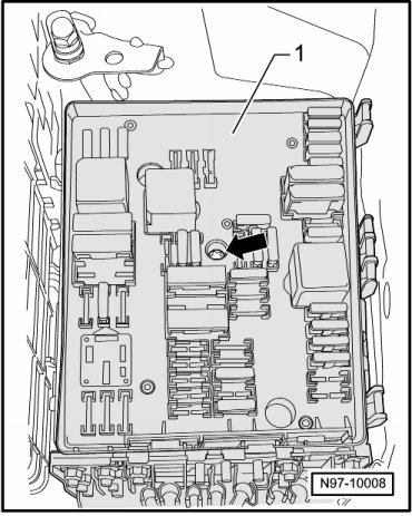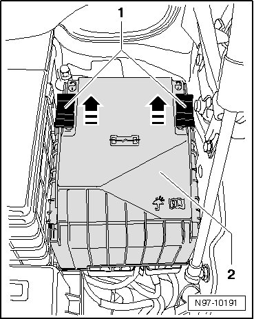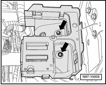 In order to be able to remove the flat terminal housing - 1 -, air filter housing (only vehicles with Diesel engine), battery and battery console must be removed.