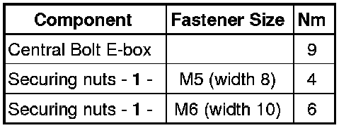 Removing the central bolt - arrow - presses the E-box - 1 - up off the E-box bracket.