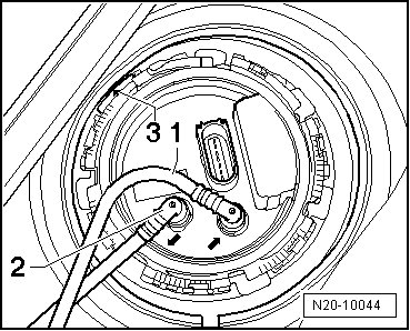 • Drain the fuel tank, if necessary using the fuel extracting device (VAS 5190). Refer to => [ Fuel Tank, Draining ] Procedures.