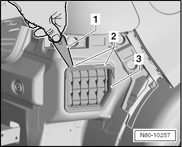 - Release the tabs - 2 - using the (3409) - 1 - and remove the vent frame - 3 - from the side panel.