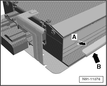 - When installing the amplifier, be sure to slide it in - direction of arrow A - so that it fits into the notch - arrow B -.