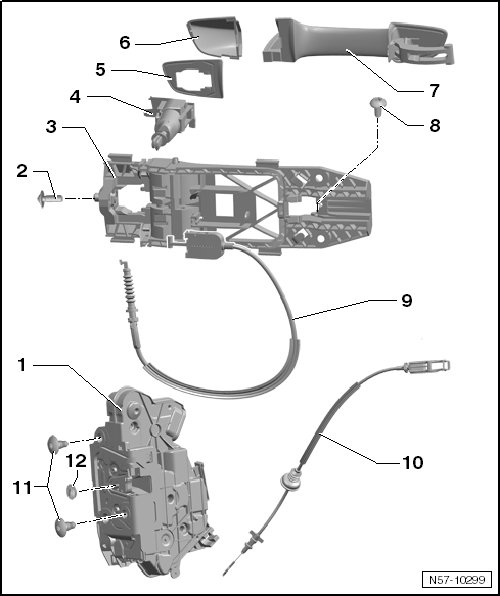 Passenger side without lock cylinder, removing and installing, refer to => [ Cap without Lock Cylinder ] Service and Repair.