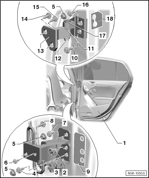 • The illustration shows a right door hinge. The left door hinge is identical.