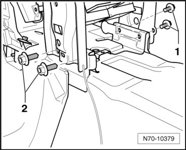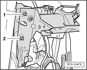 - Remove the right and left bolts - 1 - and - 2 - (20 Nm).