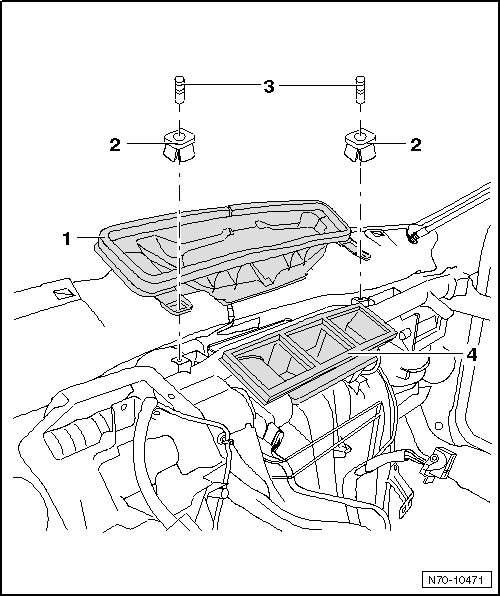 - Remove the intermediate pieces - 1 - and - 4 - from the heater and A/C unit.