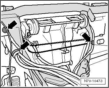 - Remove the wiring harness from the crossmember - arrows -.