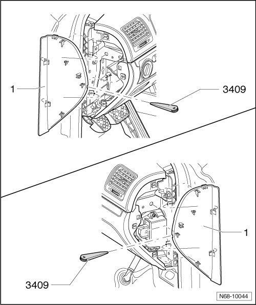 - Using the Trim Removal Wedge (3409) , pry the right side of the instrument panel cover - 1 - out of the retainers.