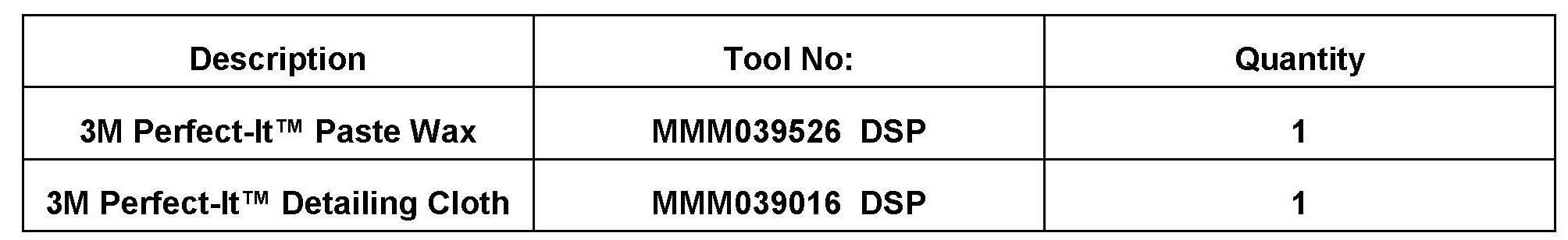 ^ Hand apply 3M Perfect-It Paste Wax (3M Part No. 39526) or equivalent (follow manufacturer instructions regarding use of product).