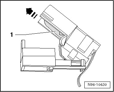 - Depress retainers - arrows - and remove mounting sleeve with bulb holder.