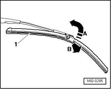 - Tilt the wiper blade - 1 - on wiper arm all the way - arrow A -.