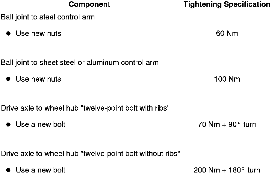 - Tighten drive axle bolt to wheel hub: