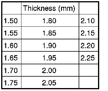 Adjustment Shim Table