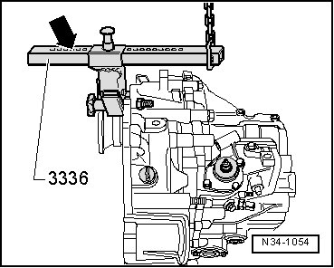 - Lift the transmission with a shop crane and the transmission support jig (3336).