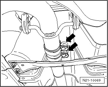 - Disconnect the exhaust system at the double clamp - arrows -.