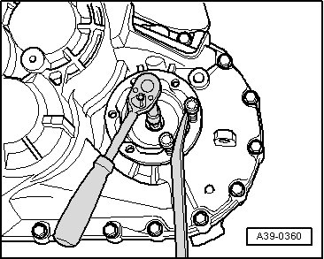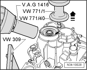 - Install the adapter for VW771 slide hammer (VW 771/40) into the threaded hole in the transmission housing.
