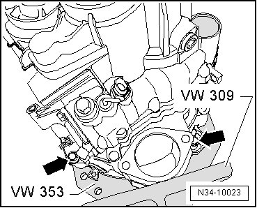 The back of the separating tool must touch the thrust tube (VW 455) or the sleeve (3160) free of play.