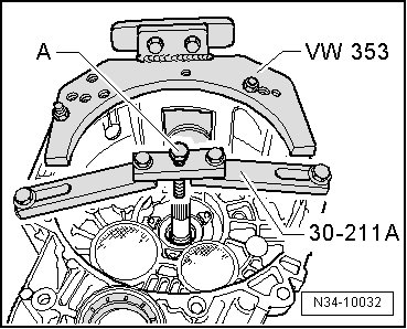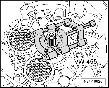 - Remove the separating tool - A - and the thrust tube (VW 455) (illustration) or the sleeve (3160) from the input shaft.