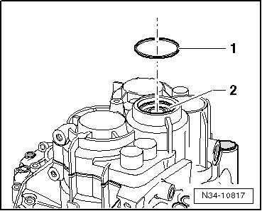 - Remove the washer - 1 - from the transmission housing - 2 -, if equipped.