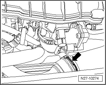 - Loosen spring clamp - arrow - using (VAS 5024 A).