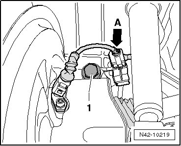 - Unhook speed sensor wiring - arrow A - from the upper transverse link.