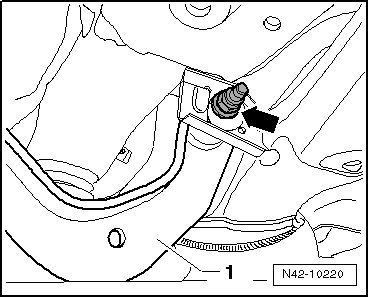 - Fasten upper transverse link - 1 - to the subframe and tighten the new nut - arrow -.