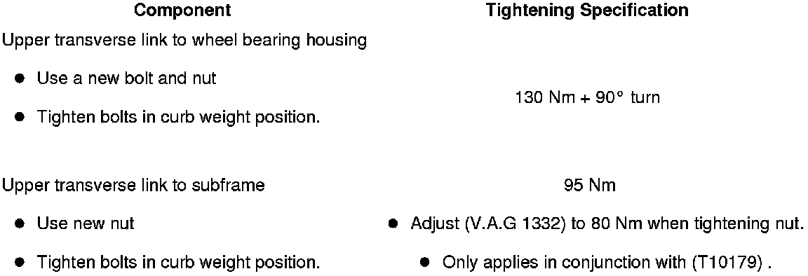 - Insert the upper transverse link into the vehicle and tighten the bolts by hand.