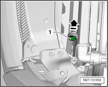 - Push the cover - 1 - down slightly and remove the circlip - arrow -.