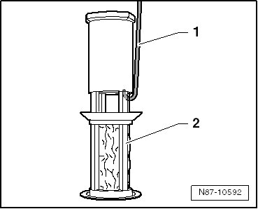 - Carefully remove the filter (strainer) - 2 - from the condenser with the welding wire - 1 -.