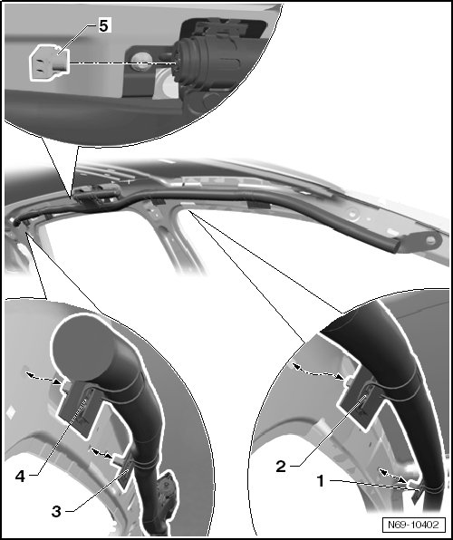 If one of the four clips were damaged while removing, the side curtain airbag must be replaced!