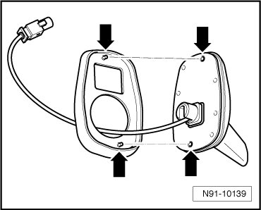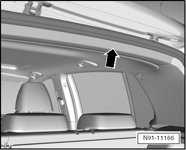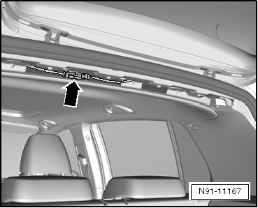- Remove the connectors from the mount on the roof reinforcement and disconnect the connectors - arrow -. There may be up to 3.