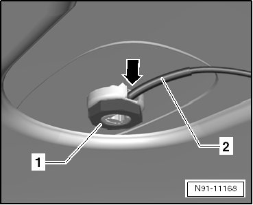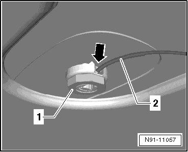 • After installing antenna, ensure antenna wiring - 2 - is correctly routed through harness opening - 1 - in securing nut - 3 -.