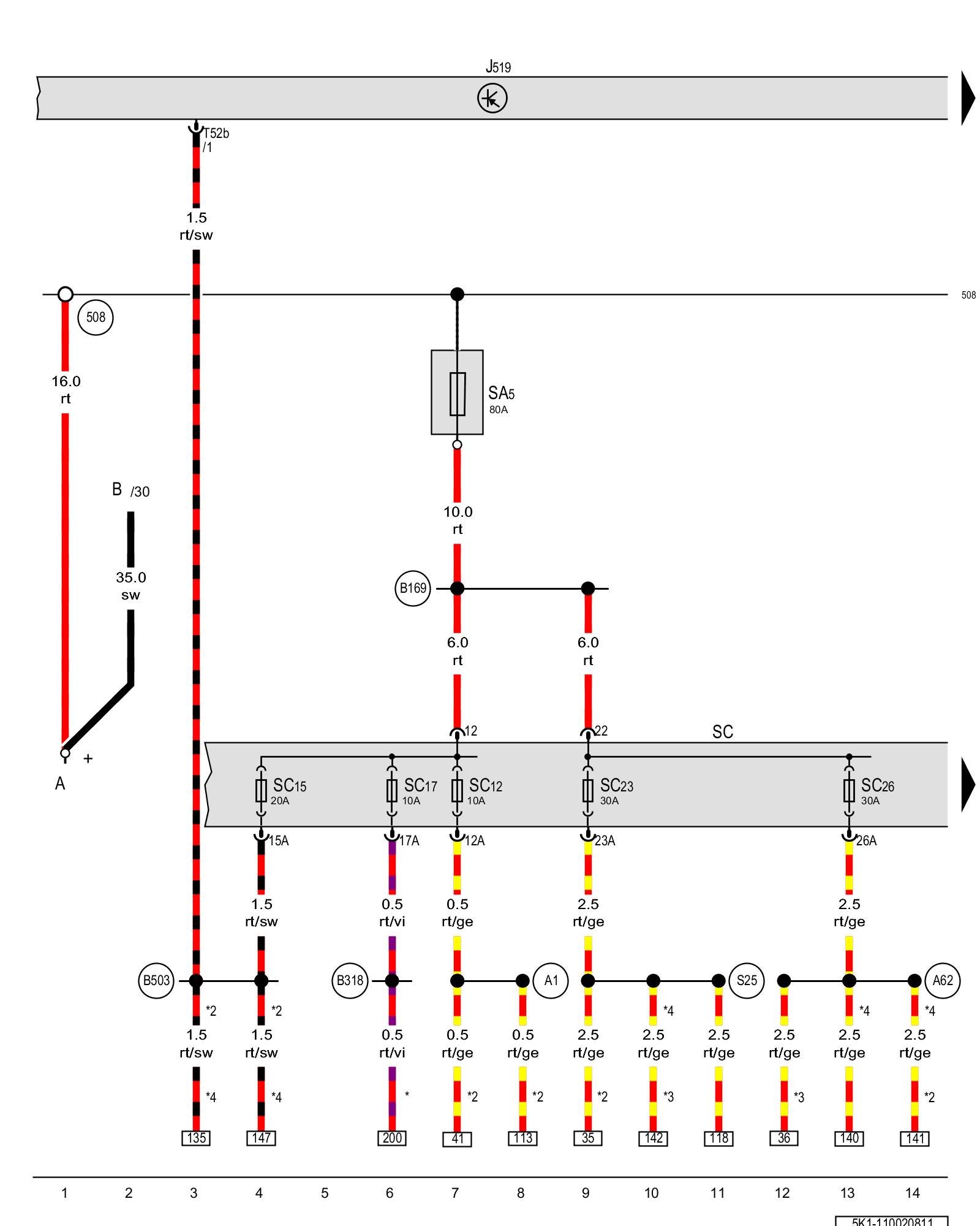 SA5 - Fuse 5 (on fuse panel A) Fuse overview (SA), (SB), (SC)