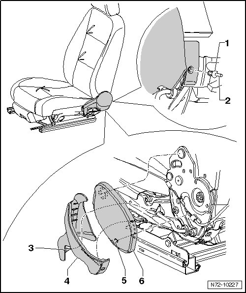 - Release the retaining hook - 5 - and remove the trim - 6 - from the seat.