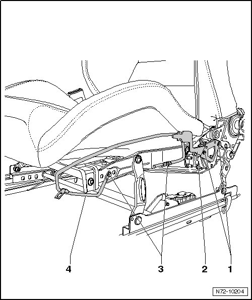 • As of MY 10, the bracket - 4 - is riveted to the seat pan with bolts - 1 - and - 3 -. Drill out the blind rivet to remove the bracket.