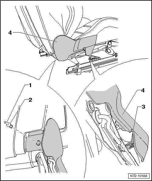 - Press tab - 3 - upward and remove trim - 4 - from seat.