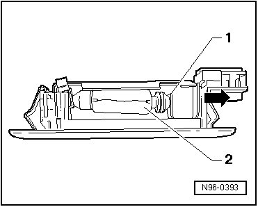 - Push contact plate - 1 - in direction of arrow and remove the tubular bulb - 2 - from the socket.