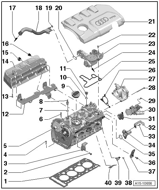 - Tighten the crankcase ventilation bolts in sequence - 1 through 10 - to 11 Nm.