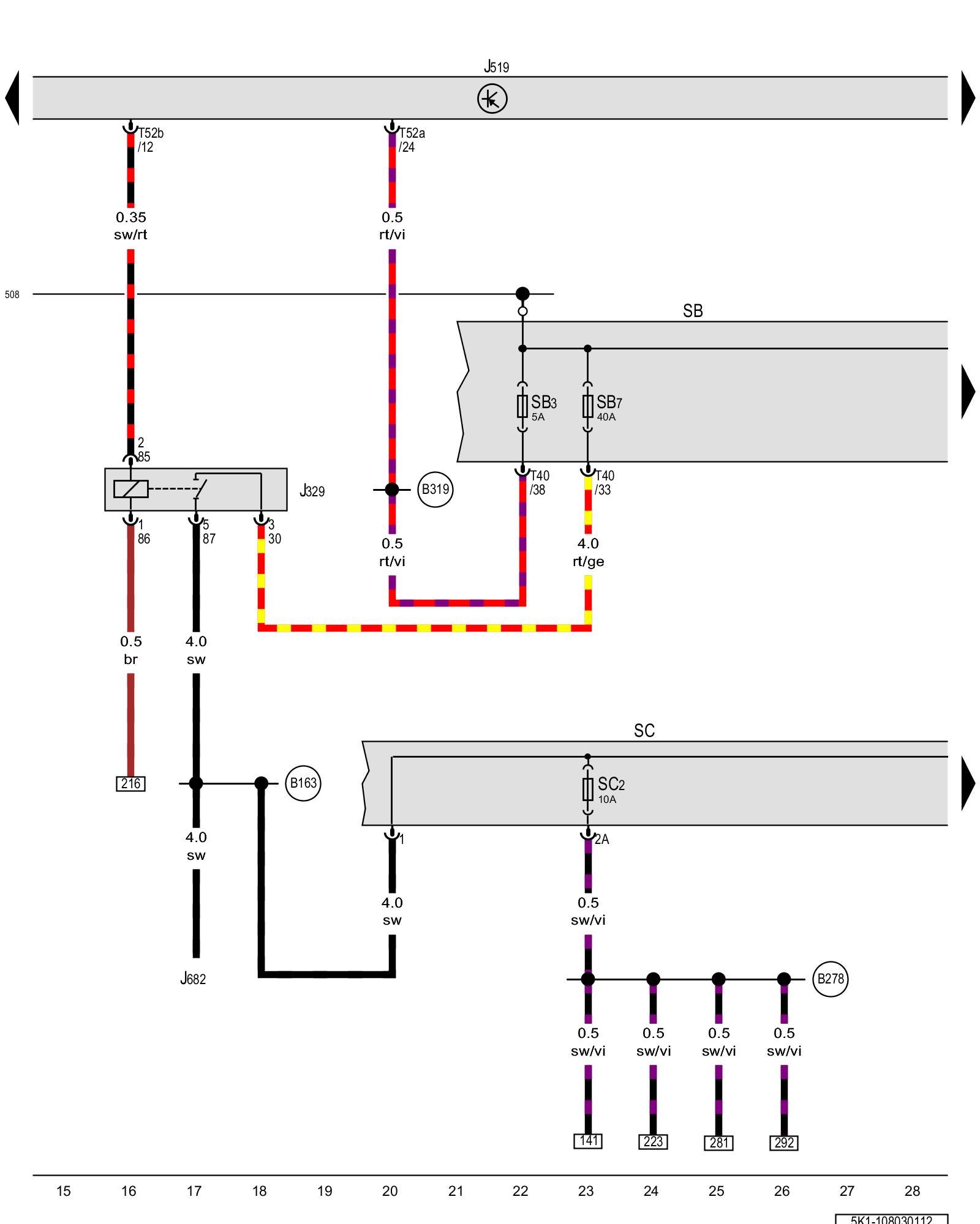 SB - Fuse panel B Fuse overview (SA), (SB), (SC)