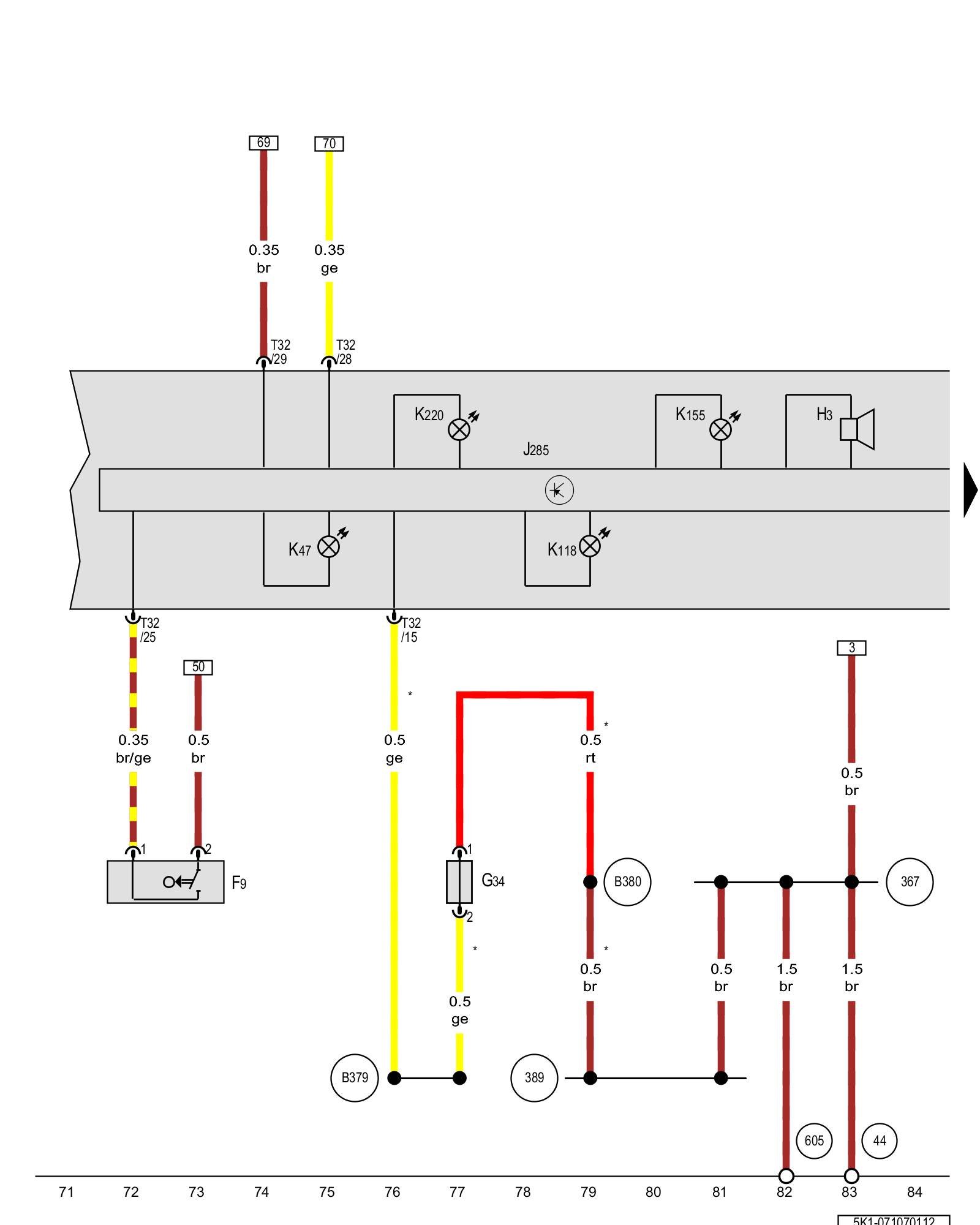 J285 - Instrument cluster control module Control modules in front part of vehicle - Overview of Control Modules