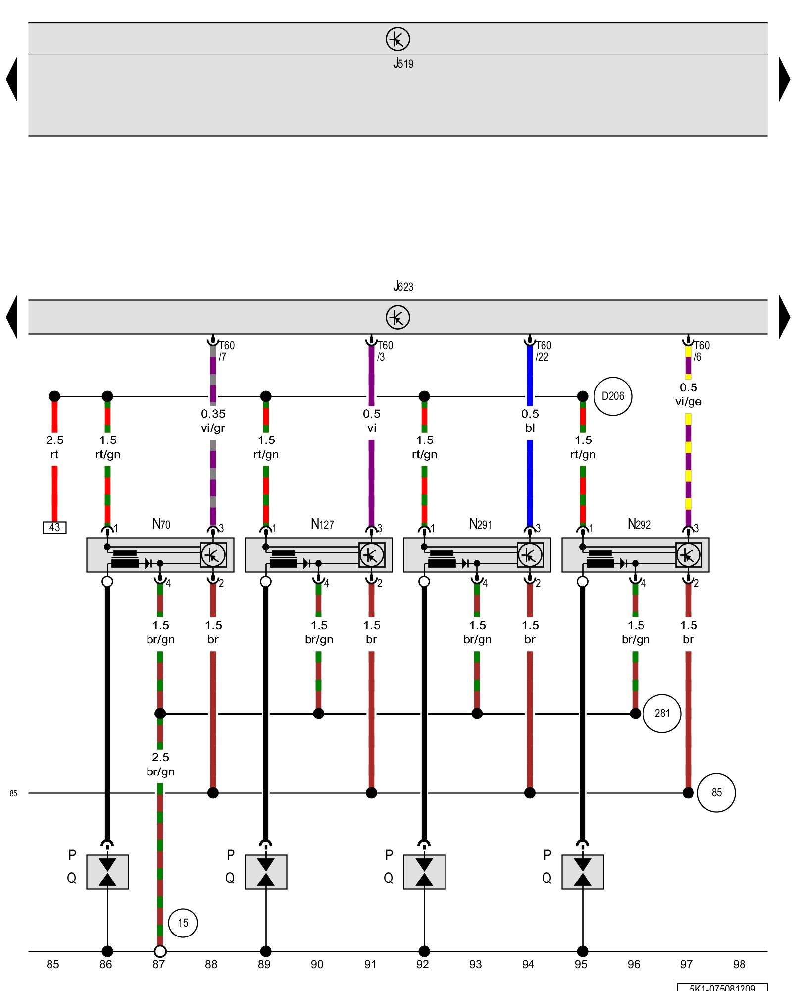 J519 - Vehicle electrical system control module Control modules in front part of vehicle - Overview of Control Modules