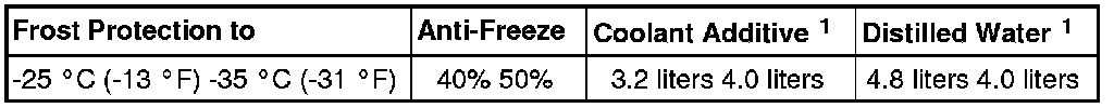 • If a lower freeze protection is necessary due to the climatic conditions, increase the amount of coolant additive. The maximum amount is 60%. If the amount is increased beyond that, the freeze protection will be reduced and the cooling effect will be reduced.