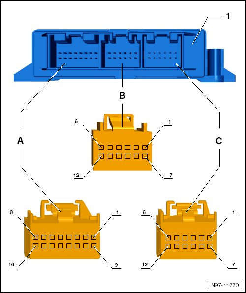 6 - Data Bus On Board Diagnostic Interface -J533- (Powertrain CAN bus high) connection 1 in the main wiring harness -B383-
