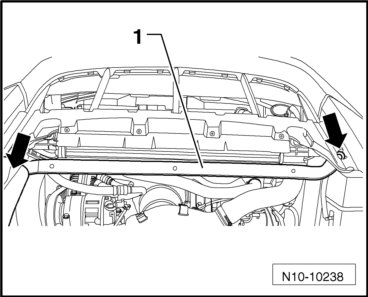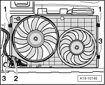 - Remove the bolts - 3 - and remove the fan shroud downward.