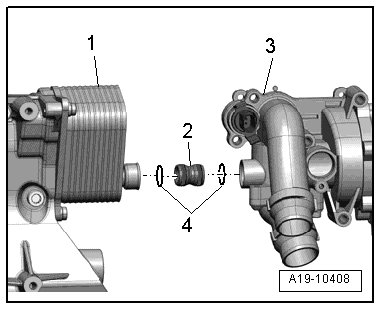 - Install the union - 2 - into the coolant pump housing - 3 -.