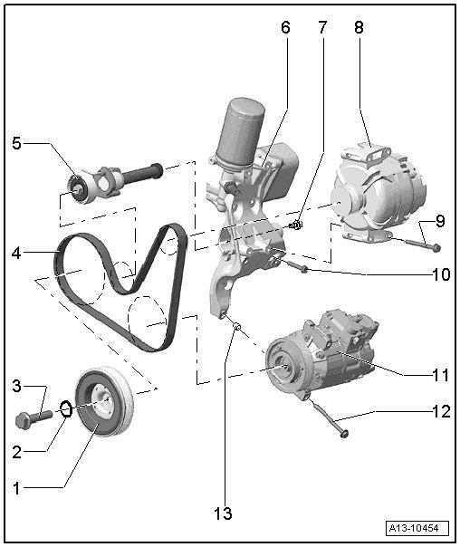 Removing and installing, refer to => [ Ribbed Belt ] Ribbed Belt.