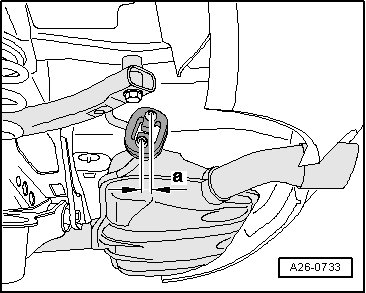 - Push the exhaust system far enough forward so that the pretension at the retaining loop for the rear muffler equals 15 to 17 mm - a -.