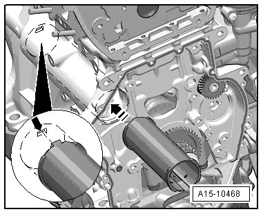 The pin - arrow - on the bearing pin must engage in the hole in the cylinder block.