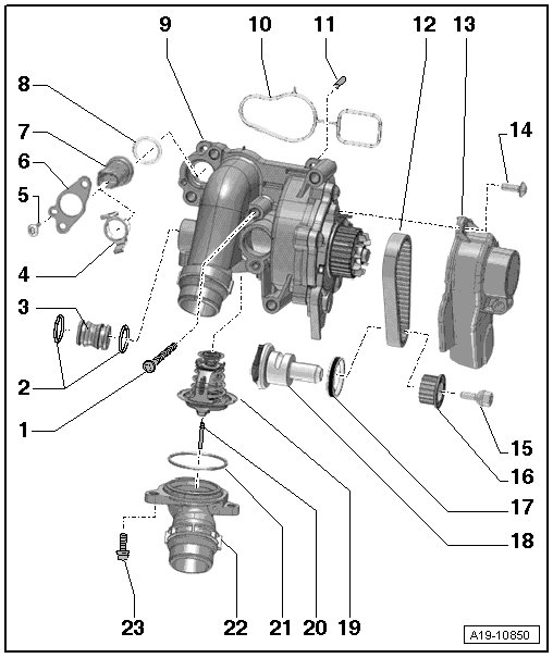 • The coolant thermostat can be checked in "Guided Fault Finding" under "Function and Component Selection".