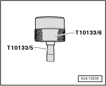 - Now, press the calibrating sleeve (T10133/8) using a gentle turning motion (approximately 180°) onto the fuel injector until it stops.